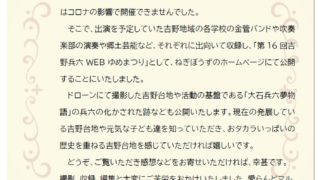 お知らせ vol.4吉野兵六会だより~第16回吉野兵六ゆめまつりはWEBで公開~