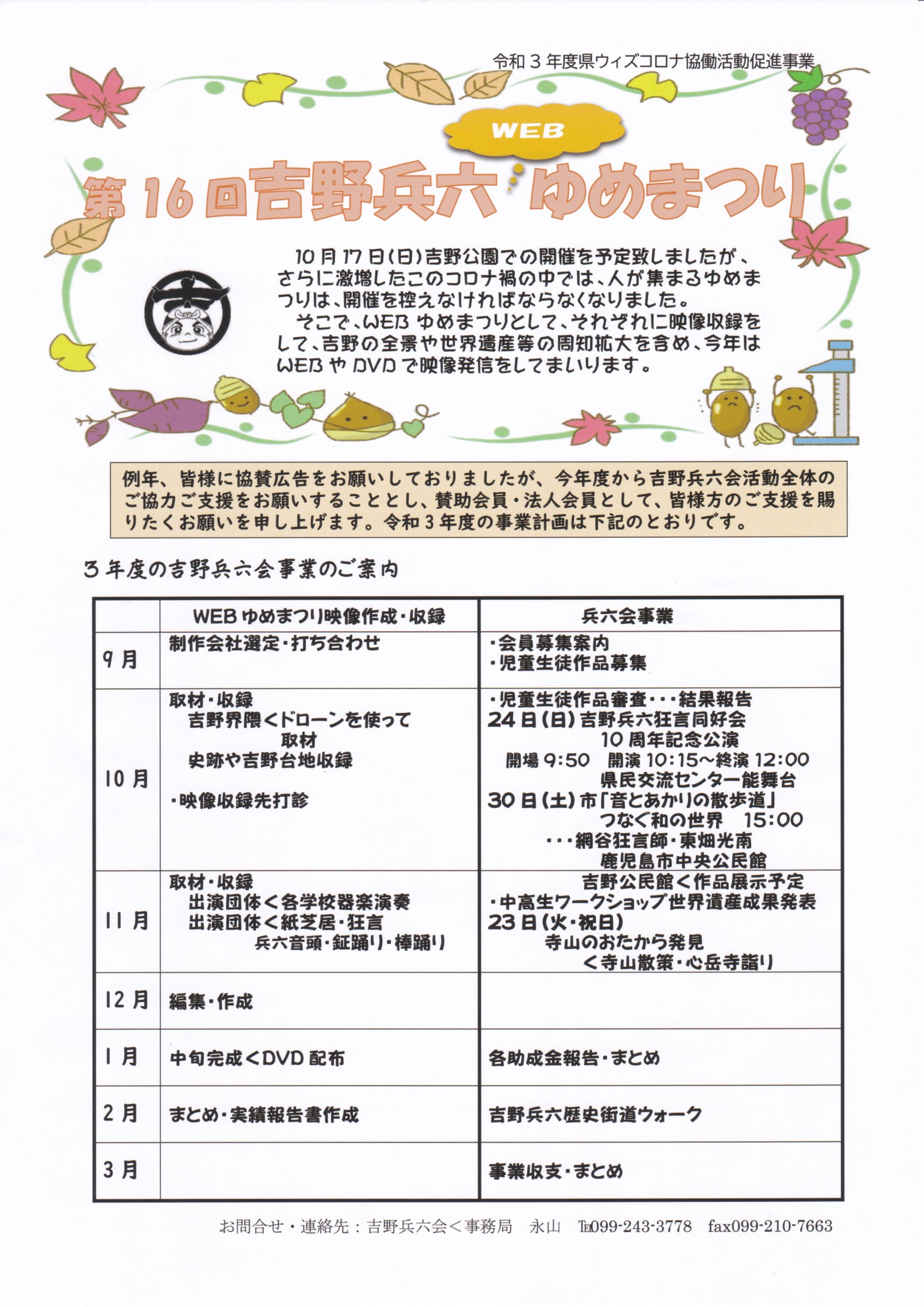 お知らせ「第16回:吉野兵六ゆめまつり」をWEBで開催します。