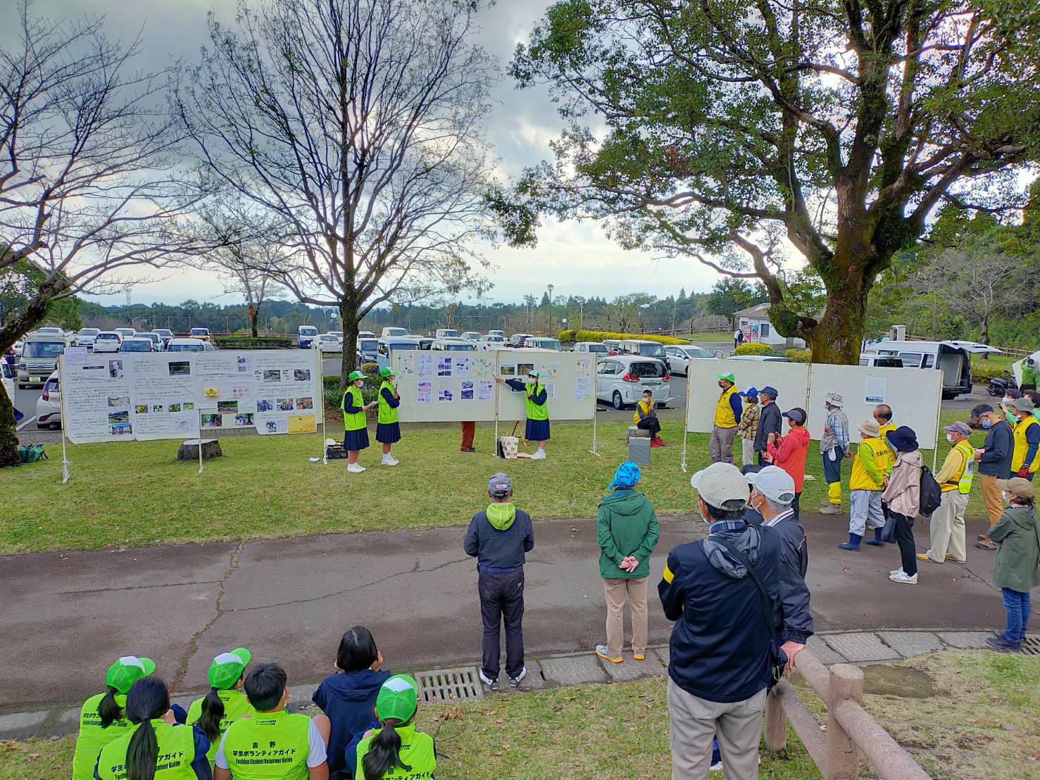 そして、まずは吹奏楽部の演奏(吉野中学校)から始まり、吉野兵六ぼっけもん団による鹿児島弁の吉野兵六物語、尺八の演奏、そして環境美化活動の紹介(磯海水浴場の清掃をする大学生の有志)や世界文化遺産のパネルガイド(東高校、吉野東中学校、吉野中学校)などなど。