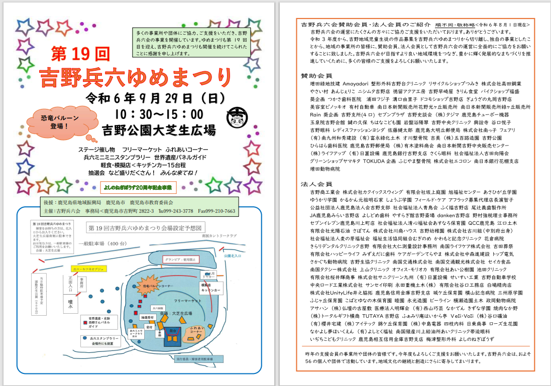 「第19回吉野兵六ゆめまつり」を令和6年9月29日(日)に開催します♪
