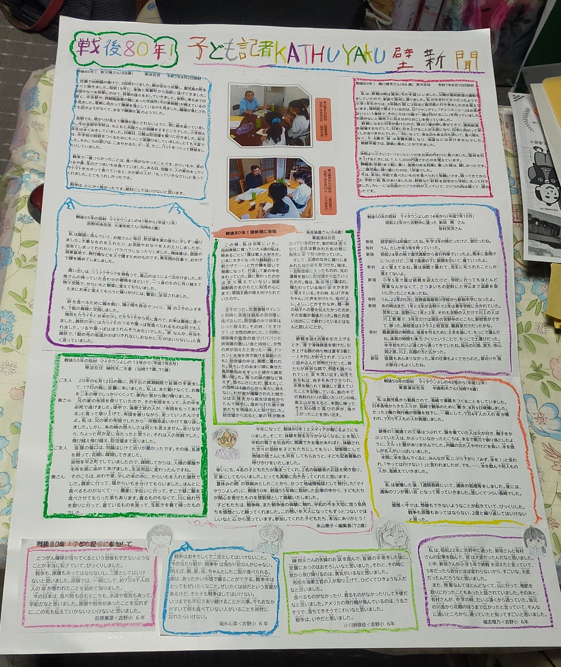 戦後80年。体験を語る方々が少なくなることを思い、平和の尊さを社会的に意識できる場があればと、体験された方々への取材を子ども達にしてもらい、壁新聞にして地域の皆さんにも共有してもらおうと、子ども記者募集の呼びかけをいたしました。